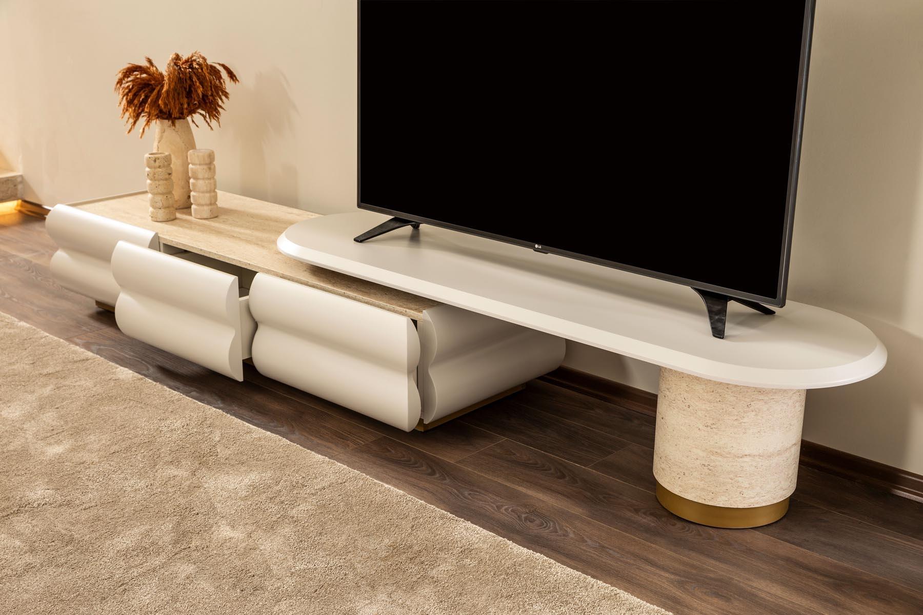 Zarif ve klasik tasarımıyla yaşam alanınıza sofistike bir hava katan Milas TV Ünitesi, estetiği ve düzeni bir arada sunuyor. İnce detaylarla işlenmiş yapısı ve işlevsel raflarıyla bu ünite, salonunuz için hem dekoratif hem de son derece pratik bir çözüm sunar.